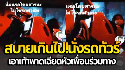 สบายเกินไป!นั่งรถทัวร์-เท้าพาดเฉียดหัวเพื่อนร่วมทาง
