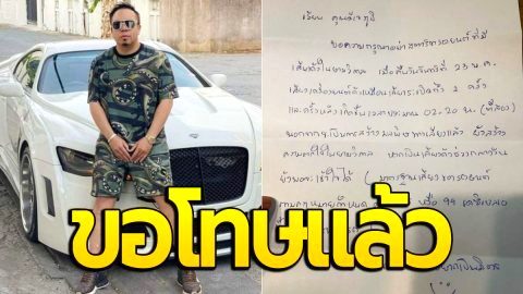 ขอโทษแล้ว "ดีเจภูมิ" เพื่อนบ้านร่อนจดหมาย สตาร์ทรถยนต์ เสียงดังในยามวิกาล