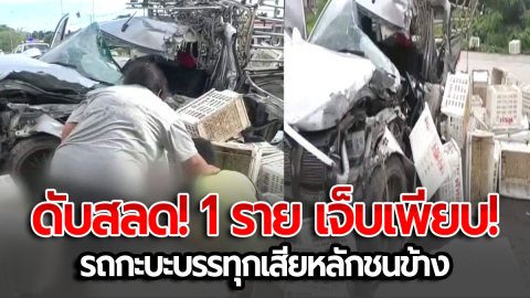 ดับสลด! รถกะบะบรรทุกเสียหลักชนข้าง เสียชีวิต 1 เจ็บหลายหลาย