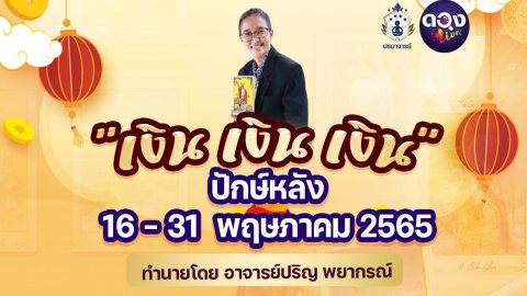 "เงิน เงิน เงิน" ปักษ์หลัง 16 - 31 พฤษภาคม 2565 โดย อาจารย์ปริญ พยากรณ์