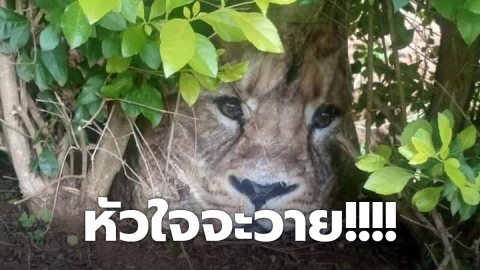 หัวใจจะวาย!!สิงโตแอบซุ่มข้างบ้าน เจ้าหน้าที่มาเงิบหนักที่แท้คือ!!