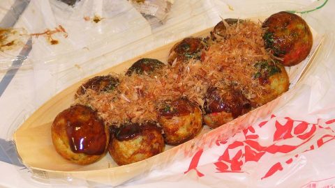ทะโกะยะกิ อาหารญี่ปุ่นยอดนิยม ทอดหรือปิ้งให้สุด, ราดซอส แล้วโรยสาหร่ายและเนื้อปลาทอด