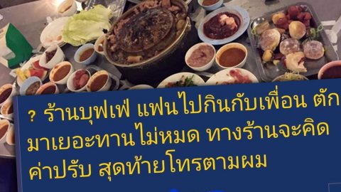 หัวใส!แฟนโทรมาให้กินอาหารบุฟเฟที่ตักมาเหลือเพราะไม่อยากเสียเงินค่าปรับ