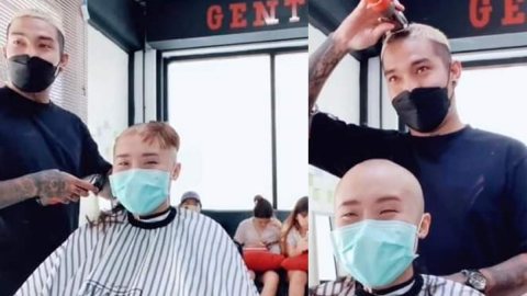 ช่างตัดผมโกนหัวเป็นเพื่อนลูกค้าเพราะ!!