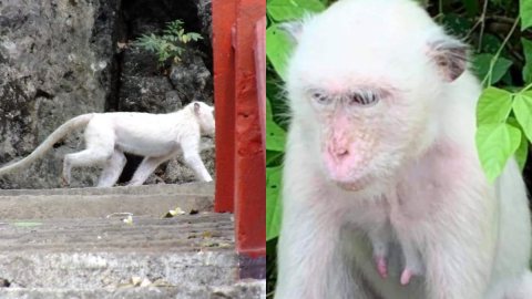 "ตัวล่ะล้าน" พบลิงเผือกหายาก ที่วัดเขาพรหมชะแง้