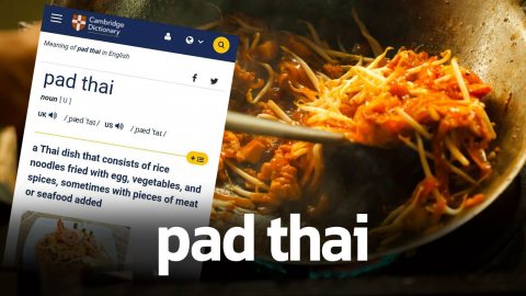 ผัดไทย (pad thai) เขียนด้วยตัวเล็ก ถูกบรรจุเข้าเป็นคำศัพท์สามัญในพจนานุกรม Oxford Advanced Learner's Dictionary และ Cambridge dictionary แล้ว