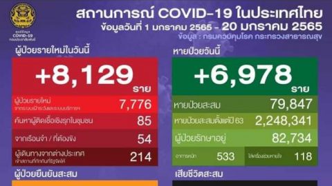 โคดวิดวันพฤหัสบดีที่ 20 มกราคม 2565
