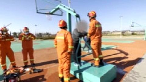 จีน: เด็กชายหัวติดคาอยู่ระหว่างเสาของแป้นบาสเก็ตบอล