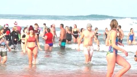 อังกฤษ: วันบ็อกซิ่งเดย์ นักว่ายน้ำสวมชุดแฟนซีและแช่ตัวในน้ำที่เย็นจัด