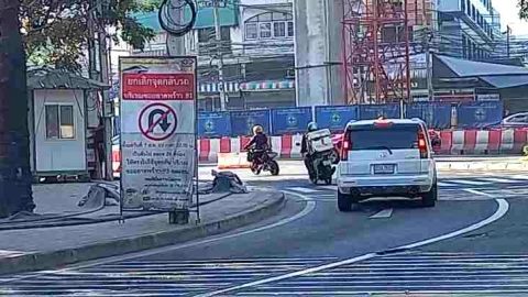ป้ายเตือนตั้งผิดที่หรือป่าว! @ทางแยกโค้งบังคนข้ามถนน