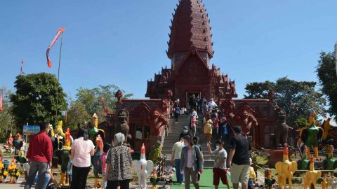 หยุดยาว 3 วัน นักท่องเที่ยวแห่ไปลอดใต้โลงแก้วกราบขอพรหลวงปู่สรวงวัดไพรพัฒนา