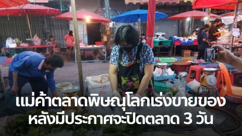 พ่อค้า แม่ค้า ตลาดศาลพ่อปู่ดำ เร่งจำหน่ายพืชผลทางการเกษตร หลังศบค.พิษณุโลก ได้มีประกาศปิดตลาดเป็นเวลา 3 วัน