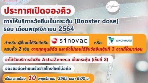 พรุ่งนี้เปิดจองคิวฉีด เข็มกระตุ้น วัคซีน AstraZeneca เข็มที่ 3 (Booster dose)