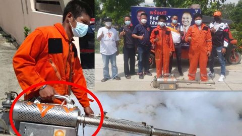 ชาวบ้านสุดงง!!!"เจ้าหน้าที่คนเดิมเพิ่มเติมสติ๊กเกอร์พรรค"ส.ส.ก้าวไกลลงพื้นที่ฉีดยุงลาย
