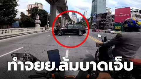 เ..ี.ย! กลับรถบนสะพานหัวช้าง ทำมอเตอร์ไซด์ล้มบาดเจ็บ