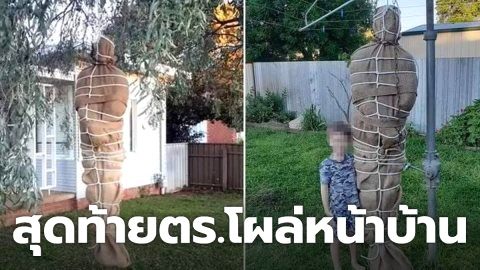 สมจริงเกินไป! แม่ออสซี่ตกแต่งบ้าน ต้อนรับวันฮาโลวีนที่น่าขนลุก สุดท้ายตร.โผล่หน้าบ้าน