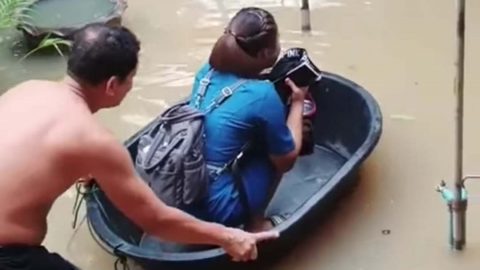 น้ำตาซึม! ในวันน้ำท่วมบ้าน! พ่อยอมลุยน้ำท่วม!ส่งลูกไปทำงาน!!!