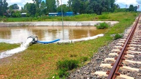 น้ำท่วมเครื่องควบคุมไฟฟ้าพัง!!เหตุน้ำท่วมอุโมงค์ลอดรถไฟโคราช