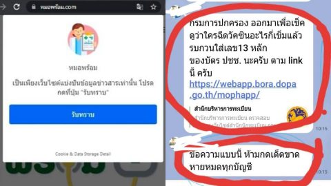 เตือนเวบปลอม!!อย่าหลงเชื่อจะสูบเงินหมดบัญชี (สอบถามการฉีดวัคซีน)