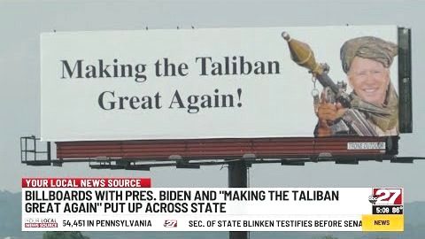 ป้ายโฆษณา "Joe Biden ทำให้ Taliban ยิ่งใหญ่อีกครั้ง"