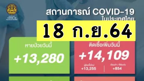 ยอดโควิดวันนี้ ติดเชื้อเพิ่ม 14,109 ราย หายป่วย 13,280 ราย🇹🇭