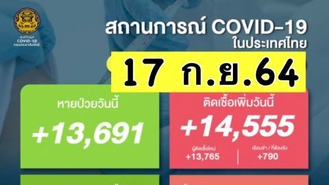 โควิดดีดขึ้น 14,555 ราย ผู้ป่วยกำลังรักษา 129,421 ราย
