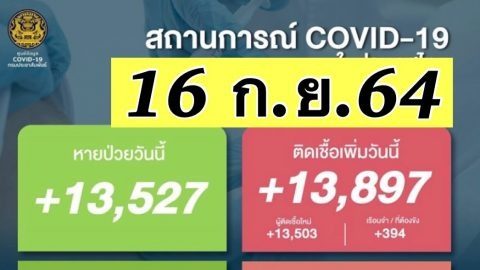 ยอดโควิดวันนี้ ติดเชื้อเพิ่ม 13,897 ราย หายป่วย 13,527 ราย 🇹🇭