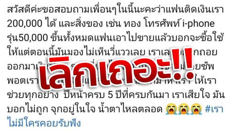 สาวบุญทุ่ม!! แฟนเอาทั้งเงินทั้งของไปขาย ยังอดทนต่อ...