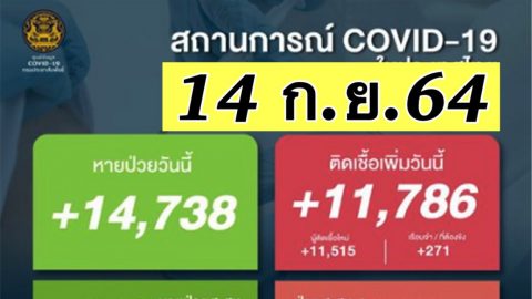 ยอดผู้ติดเชื้อวันนี้ รวม 11,786 หายป่วย 14,738