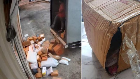 แฉคลิป‼️ ไปโกรธใครมา! พนักงานขนส่งเตะพัสดุกระจาย ทำยังกับดาวซัลโว⚽️