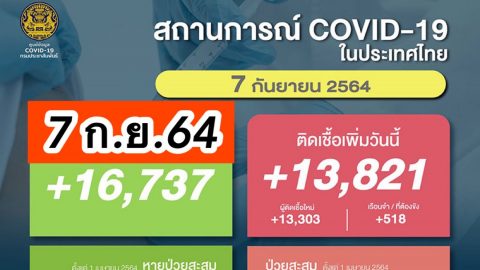 โควิดวันนี้ เสียชีวิตยังสูง ติดเชื้อใหม่ 13,821 ราย หายป่วย 16,737 ราย 🇹🇭