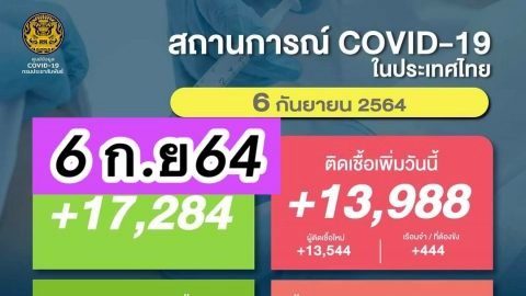 ยอดโควิดวันนี้ ติดเชื้อเพิ่ม 13,988 ราย หายป่วย 17,284 ราย🇹🇭