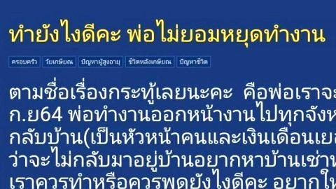 สาวห่วงพ่อวัยเกษียน!!ไม่ยอมพักทำไงดี ชาวเน็ตบอกถ้าพักเฉยๆสุขภาพจะไปเร็ว