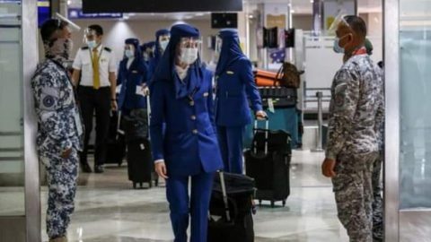 สาวนุ่งบิกินีขึ้นเครื่อง สงสัยคงรีบมาก โชคดีนะที่เธอใส่แมสก์มาด้วย