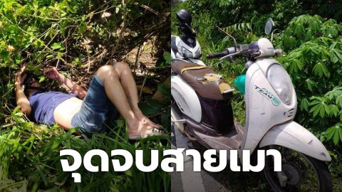 หนุ่มวัย 50 เมาหนักขับจยย.หลุดโค้งตกข้างทางหัวทิ่มนอนในกอหญ้า