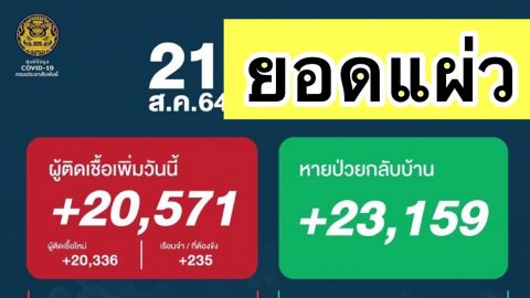 โควิดวันนี้ ผู้ป่วยติดเชื้อใหม่ 20,571 ราย