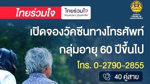 ไทยร่วมใจ เปิดจองวัคซีนทางโทรศัพท์