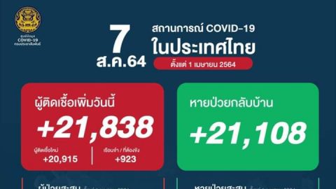 พุ่ง‼️ "โควิดวันนี้" นิวไฮ 21,838 ราย เสียชีวิต 212 ราย รวมสะสมทะลุ 6 พันรายไปแล้ว 🇹🇭