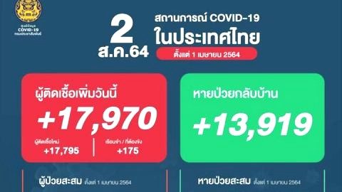 ยังแรง ติดเชื้อเพิ่มวันนี้ 17,970 ราย เสียชีวิต 178 ราย