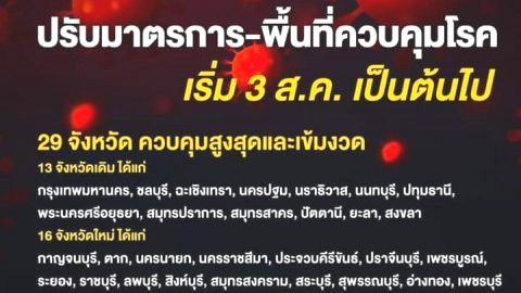 ศบค.ปรับมาตรการ-พื้นที่ควบคุมโรค เริ่ม 3 ส.ค.เป็นต้นไป กำหนด 29 จังหวัด ควบคุมสูงสุดและเข้มงวด สกัดโควิดระบาด