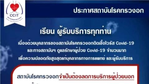 สถาบันโรคทรวงอก ประกาศลดบริการผู้ป่วยนอก เนื่องจากบุคลากรติดCovid-19 และต้องรักษาผู้ป่วย Covid-19 จำนวนมาก