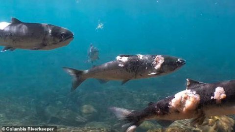 น่าสะพรึงกลัว! คลื่นความร้อนสูงทำให้ปลาแซลมอนกำลังจะตาย เนื้อตัวเปื่อย