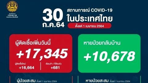 ยังแรง โควิดวันนี้ ติดเชื้อเพิ่ม 17,345 ราย หายป่วยกลับบ้านเยอะขึ้นเกิน 10,000 ราย เสียชีวิตยังเกิน 100