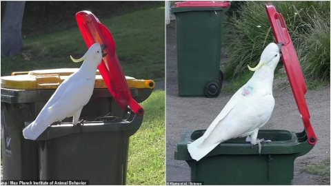 น่าทึ่งมาก! 'นกแก้วคอกคาทู' โชว์เทพเปิดฝาถังขยะเพื่อค้นหาอาหารกิน