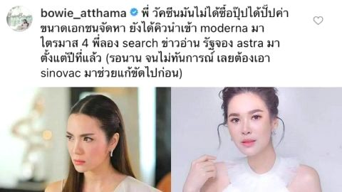 ชาวเน็ตยกให้ ผัดไท/โบวี่ เป็นโฆษกวงการบันเทิงเรื่องวัคซีน