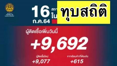 สถิติ พุ่งไม่หยุด‼️โควิดวันนี้ ป่วยใหม่ 9,692 ราย สลด ติดเชื้อเสียชีวิต 67 ราย