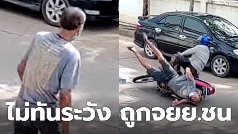 ลุงน้ำใจงาม ไม่ทันระวังโดนรถชนซะเอง