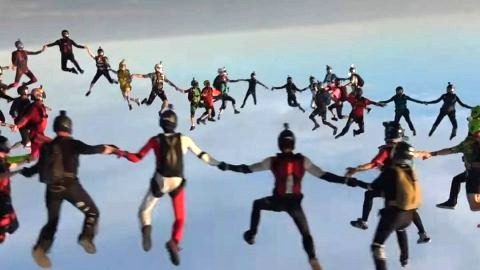 หวาดเสียว!กระโดดจับมือกลางอากาศ 40 คน!!!