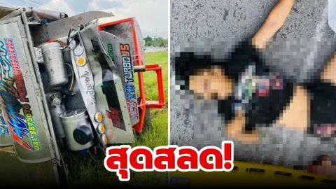 สลด!รถเกี่ยวข้าวตกจากรถเทรนเลอร์ ทับคนจูงวัวดับ 1 สาหัส 1