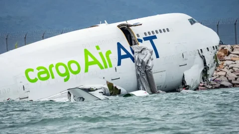 “โศกนาฏกรรมยามเช้า: เครื่องบินขนส่งสินค้าตกทะเลที่สนามบินฮ่องกง คร่าชีวิตเจ้าหน้าที่ 2 ราย”